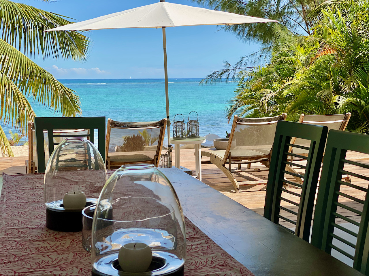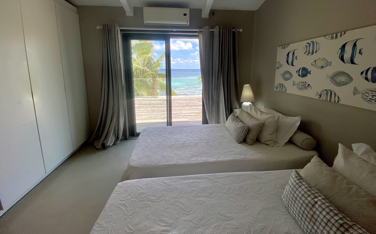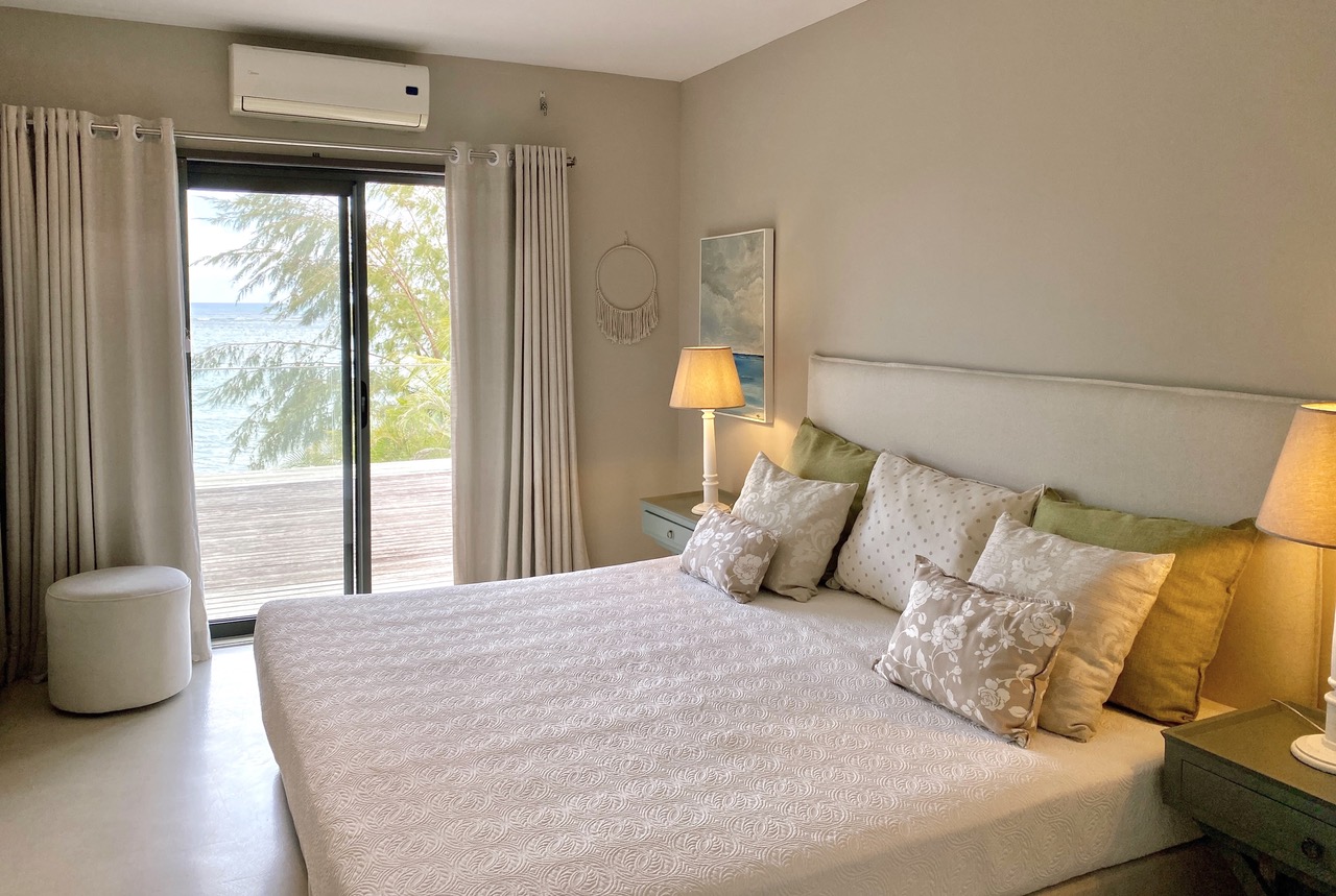 The sandy beach in front has the typical Mauritian black volcanic rocks whereas a wonderful swim is possible a few meters to your right. Or if you feel adventurous, take one of the two canoes and explore the shore on top of the blue. Enjoy a walk on the beach, treasure hunting or simply relax at your very own beach front chilling area.