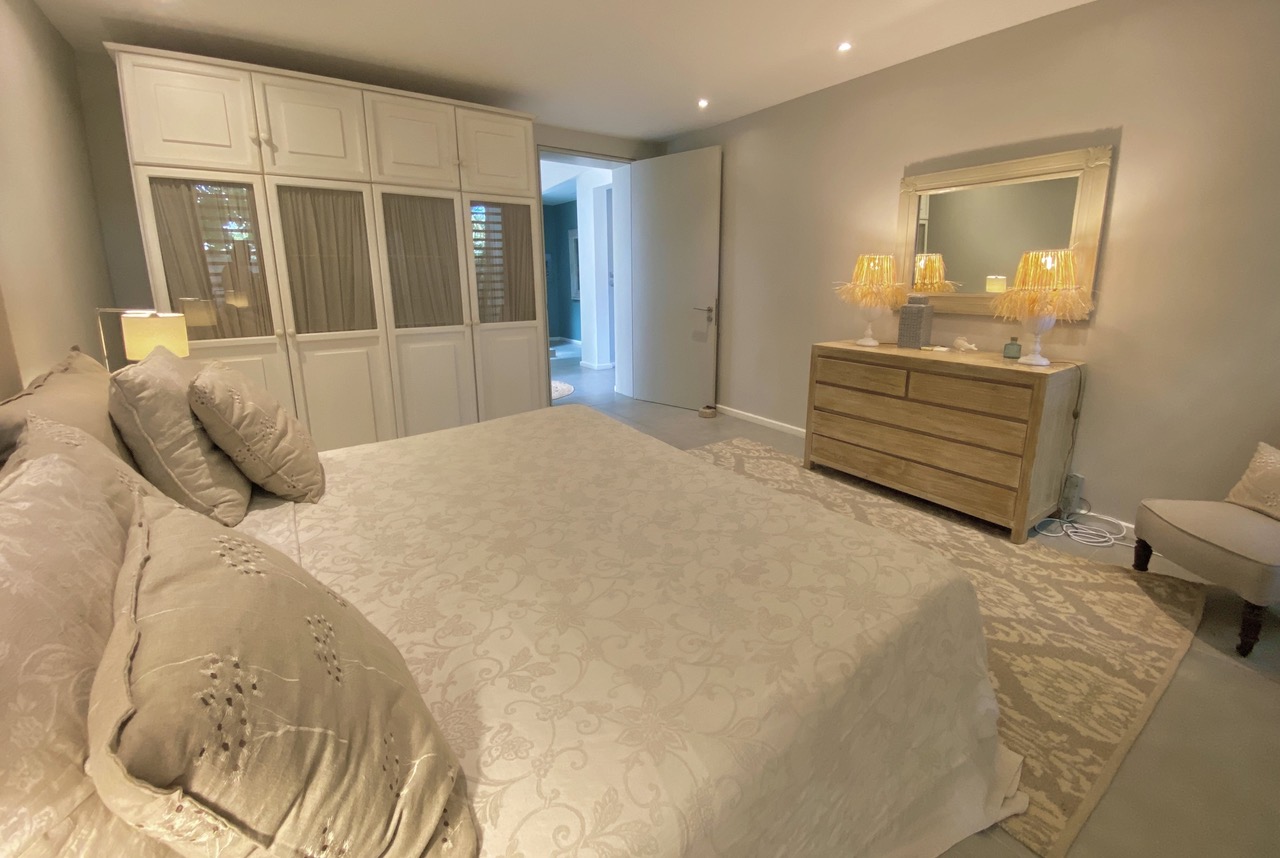 The ground floor includes the fully equipped kitchen looking onto the pool area and to the fantastic blue sea (you shall not even miss the BLUE when cooking), a lounge area with a plasma TV and a comfy couch, one bedroom with a separate bathroom and a tastefully furnished living room that opens onto the covered patio, which further leads to the sparkling blue swimming pool (Pool Size 5.6 x 2.6 m) where lounge chairs invite you to relax with a good book and a cooling drink.