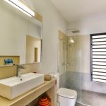 The ground floor consists in a modern living and dining area, an open fully equipped kitchen, 2 bedrooms and 2 bathrooms.
