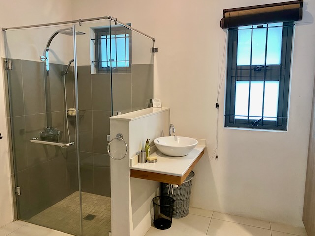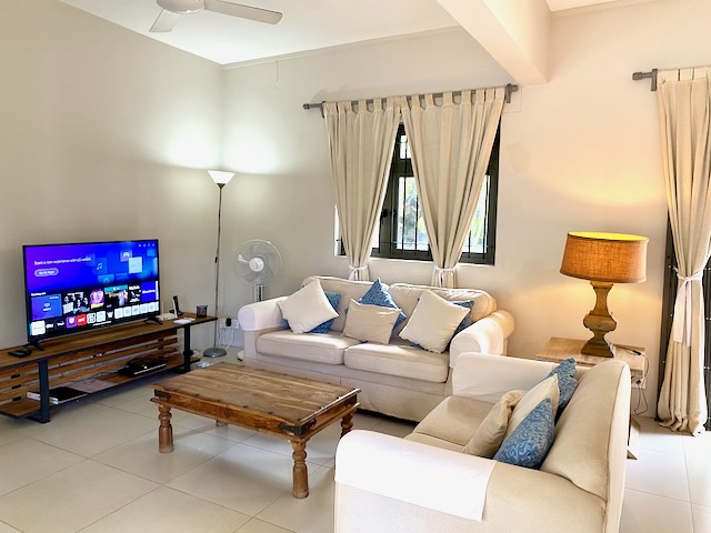 The house is at ground level and includes 2 bedrooms en-suite, fully equipped kitchen, living area and a Veranda with a small lounge area and dining table.