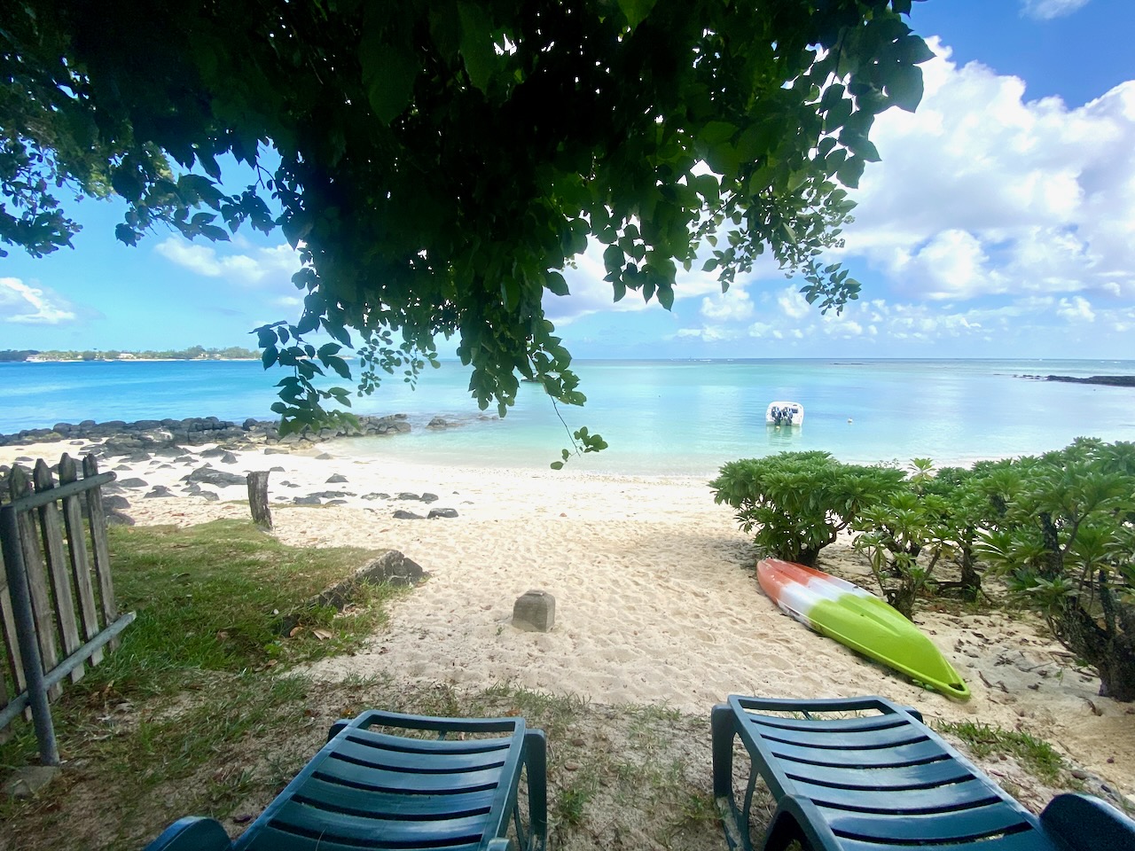 The magnificent beach offers perfect swimming conditions and is accessible through a private path within a tropical garden. 80m and you will be able to jump in the blue of the Indian Ocean.